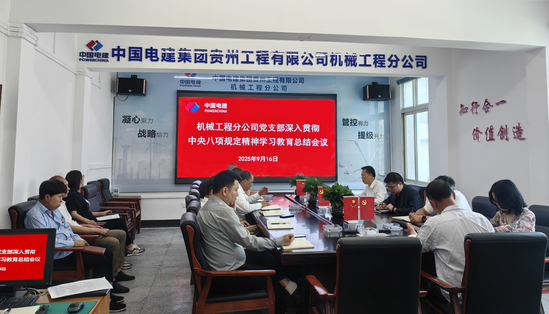 新能源电力公司开展深入贯彻中央八项规定精神学习教育总结会 能源环保公司开展深入贯彻中央八项规定精神学习教育总结会 基础设施分公司开展深入贯彻中央八项规定精神学习教育总结会 华东分公司开展深入贯彻中央八项规定精神学习教育总结会 华西分公司开展深入贯彻中央八项规定精神学习教育总结会 机械工程分公司开展深入贯彻中央八项规定精神学习教育总结会 本网讯 9月15日,公司党委召开深入贯彻中央八项规定精神学习教育总结会议 系统总结公司党委学习教育工作,研究部署巩固拓展学习教育成果、推进作风建设常态化长效化举措。公司各基层单位积极开展学习教育总结工作,巩固拓展学习教育成果,锲而不舍落实中央八项规定精神。 新能源电力公司:新能源电力公司党委召开扩大会议,总结开展深入贯彻中央八项规定精神学习教育工作。公司领导苏丹、高昱到会督导。会议强调,要深化巩固学习教育形成的体制机制,强化学习教育成果转化运用,进一步加强作风建设,强化使命担当,充分运用学习教育成果,做好“后半篇文章”,以学习教育推进高质量发展。公司领导对新能源电力公司学习教育成效进行总体评价,指出学习教育收官不是终点,而是新奋斗的起点。对新能源电力公司持续巩固拓展学习教育成果,锲而不舍落实中央八项规定精神,让学习教育的成效在推动高质量发展的生动实践中持续释放强大动能提出要求:一是聚力理论深化,在思想引领上构筑新高度。二是聚力整改攻坚,在解决问题上实现新突破。三是聚力制度优化,在长效机制上构建新格局。四是聚力发展赋能,在服务大局上展现新作为。以更加坚定的信念、更加昂扬的斗志、更加务实的作风,持续用力、久久为功,提升党建质量,推进融合赋能,突出价值创造,把学习教育成效转化为攻坚克难、干事创业的强大动力,不断开创新能源电力公司高质量发展新局面。 能源环保公司:能源环保公司党委开展深入贯彻中央八项规定精神学习教育专题总结会,全面回顾了学习教育开展情况,总结成效与经验,部署巩固拓展学习教育成果的具体措施。会议强调,通过学习教育,全体党员干部的政治意识、纪律意识、规矩意识明显增强,对作风建设的重要性有了更深刻的认识。接下来,要继续深化学习教育,将中央八项规定精神内化于心、外化于行。一是继续深化学习教育,筑牢思想根基。二是强化责任担当,狠抓工作落实。三是紧盯“四风”问题,持续深化整治。四是健全长效机制,巩固拓展成果。五是力戒形式主义,注重工作实效,继续加强监督检查,建立健全长效监督机制。六是加强宣传教育,营造良好的作风建设氛围。 基础设施分公司:基础设施分公司召开党总支(扩大)会议,全面总结深入贯彻中央八项规定精神学习教育成效,部署作风建设常态化长效化工作。会议强调,要持续巩固拓展学习教育成果,锲而不舍落实中央八项规定精神,一是深化理论武装,将学习习近平总书记关于作风建设的重要论述常态化,筑牢思想根基。二是抓好整改落实,建立长效机制,对已整改问题适时“回头看”,长期任务台账管理,防止反弹。三是强化成果转化,将学习成效转化为推动高质量发展的动力,为完成年度目标提供作风保障。 华东分公司:华东分公司党总支开展深入贯彻中央八项规定精神学习教育总结会议,传达学习习近平总书记关于深入贯彻中央八项规定精神学习教育的重要指示精神,贯彻中央党的建设工作领导小组会议精神,落实国务院国资委党委和股份公司党委扩大会议暨党建工作领导小组会议要求,系统总结了分公司学习教育工作,巩固拓展学习教育成果、推进作风建设常态化长效化。会议要求,分公司一是要以此次总结为契机,巩固拓展好学习教育成果。二是强化党建引领,抓实“雷霆行动”及各项主题实践活动。三是持续推动工作作风向严实深细转变,加大巡察反馈问题整改力度。四是要充分以公司帮扶为契机,扎实工作作风,强化过程沟通,全力破解分公司存在的制约问题,加速提升分公司市场竞争力、综合管理能力及项目履约能力,奋力改善分公司年度指标任务完成情况。 华西分公司:华西分公司党总支组织开展深入贯彻中央八项规定精神学习教育总结会议。会议对下一步工作进行安排和部署,一要持续深化理论武装,筑牢作风建设思想根基,以高度的政治自觉推动作风建设走深走实。二要将学习教育中查摆出的问题,一一对应整改,并将其纳入2025年度组织生活会深入查摆。三是拧紧作风建设责任,推进整改整治常态长效,形成以上率下齐抓共管的局面,确保中央八项规定精神学习教育取得实效,实现常态化、长效化。 机械工程分公司:机械工程分公司党支部组织召开深入贯彻中央八项规定精神学习教育总结会议,持续巩固作风建设成效。会议全面总结了支部在学习教育阶段的成果,并对下一步工作进行部署。会议强调,贯彻中央八项规定精神是长期任务,支部将以此次学习教育为契机,推动全面从严治党向纵深发展,为公司高质量发展提供坚强作风保障。会上对下一步工作提出要求 :一是持续深化作风建设,将中央八项规定精神融入日常管理。 二是强化监督检查,常态化开展“回头看”,坚决防止“四风”问题反弹回潮。 三是全体党员要严守纪律红线,发挥党员先锋模范作用,营造风清气正的政