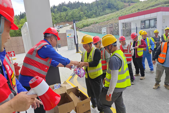 本网讯 5月17日,为保证项目汛期施工安全,检验应急预案的可行性和有效性,黔西南兴仁市屯脚坪寨风电场项目协同业主、监理、运维单位及施工人员共同开展2025年度防洪度汛应急演练,同期举行应知应会和防汛安全知识有奖竞答,进一步提升项目全员应急处置能力和汛期安全防范意识。
