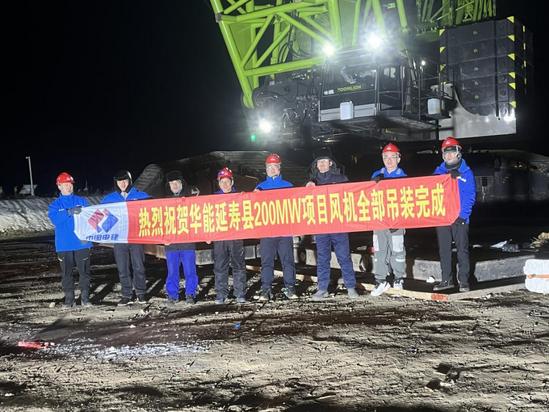 华能延寿200兆瓦风电项目全部风机吊装完成