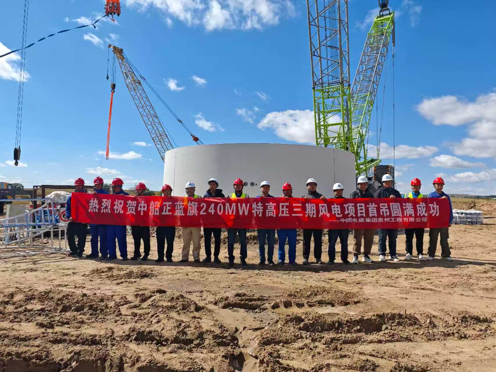 本网讯 9月24日,内蒙古中船正蓝旗300兆瓦特高压三期风光储一体化项目首台风机混塔段首吊圆满完成,标志着该项目正式进入风机安装攻坚阶段。
