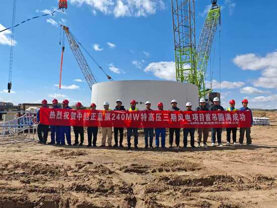 该项目位于内蒙古锡林郭勒盟正蓝旗,设计安装24台10兆瓦大容量风力发电机组,机组塔筒采用混塔结构,轮毂中心高度为160米。此次首环混塔吊装,不仅是对项目施工技术方案与团队协作能力的关键检验,更为后续规模化安装工作奠定了坚实基础。接下来,项目团队将聚焦安装进度与工程质量,加强项目安全管控,全力推进剩余风机安装任务,确保项目高质量履约。