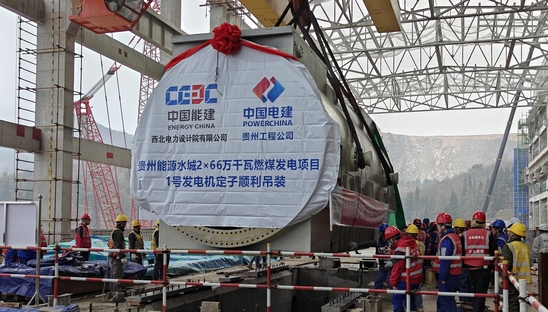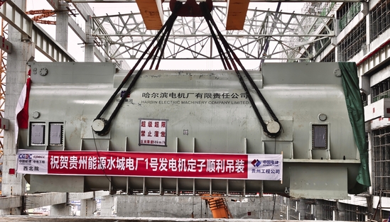 水城电厂项目部1号机发电机定子顺利吊装