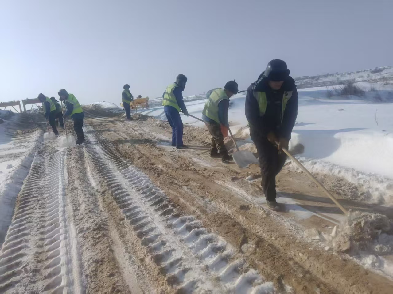 庆阳新能源项目部开展施工道路除雪保畅工作