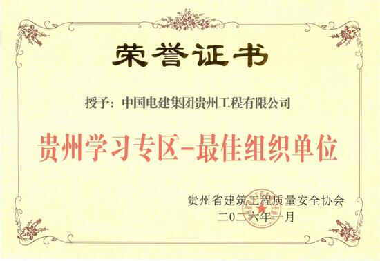 公司荣获贵州省建筑工程质量安全协会学习“最佳组织单位”称号