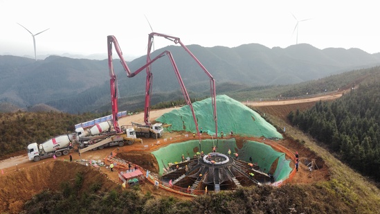 本网讯 2月5日,兴仁市新龙场放牛坪风电场项目首台风机基础完成浇筑,这一关键节点的实现,标志着项目建设正式进入主体施工的阶段,为后续风机吊装、并网发电等系列工作奠定了坚实基础。