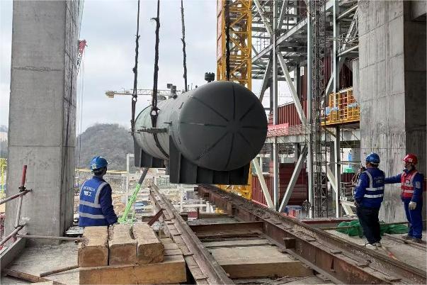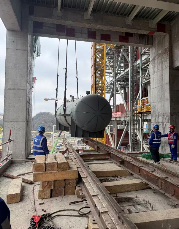 水城电厂项目2号汽轮机组0号高压加热器吊装顺利就位